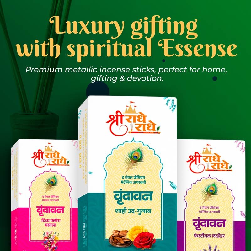 Elevate every occasion with Vrindavan-inspired incense sticks and thoughtful accessories designed to spread peace, devotion, and positivity. We craft experiences of faith, fragrance, and mindfulness—perfect for corporate gifting, festivals, and cherished moments.
